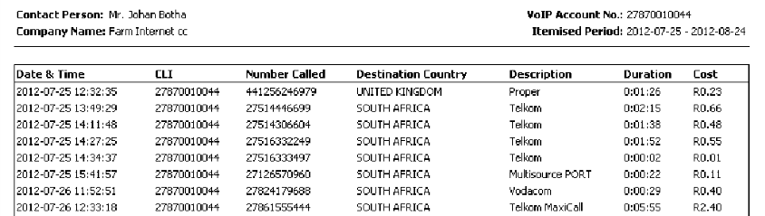- On-line, real-time access to call detail records including the ability to import these in to a spreadsheet